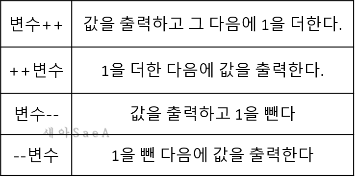 전위 : 출력 전에 연산 / 후위 : 출력 후에 연산