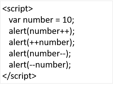 - 11에 -1을 한 후에 출력한다. | 출력 후 -1을 하므로, 출력값은 10, 현재 numver(변수) 값은 10